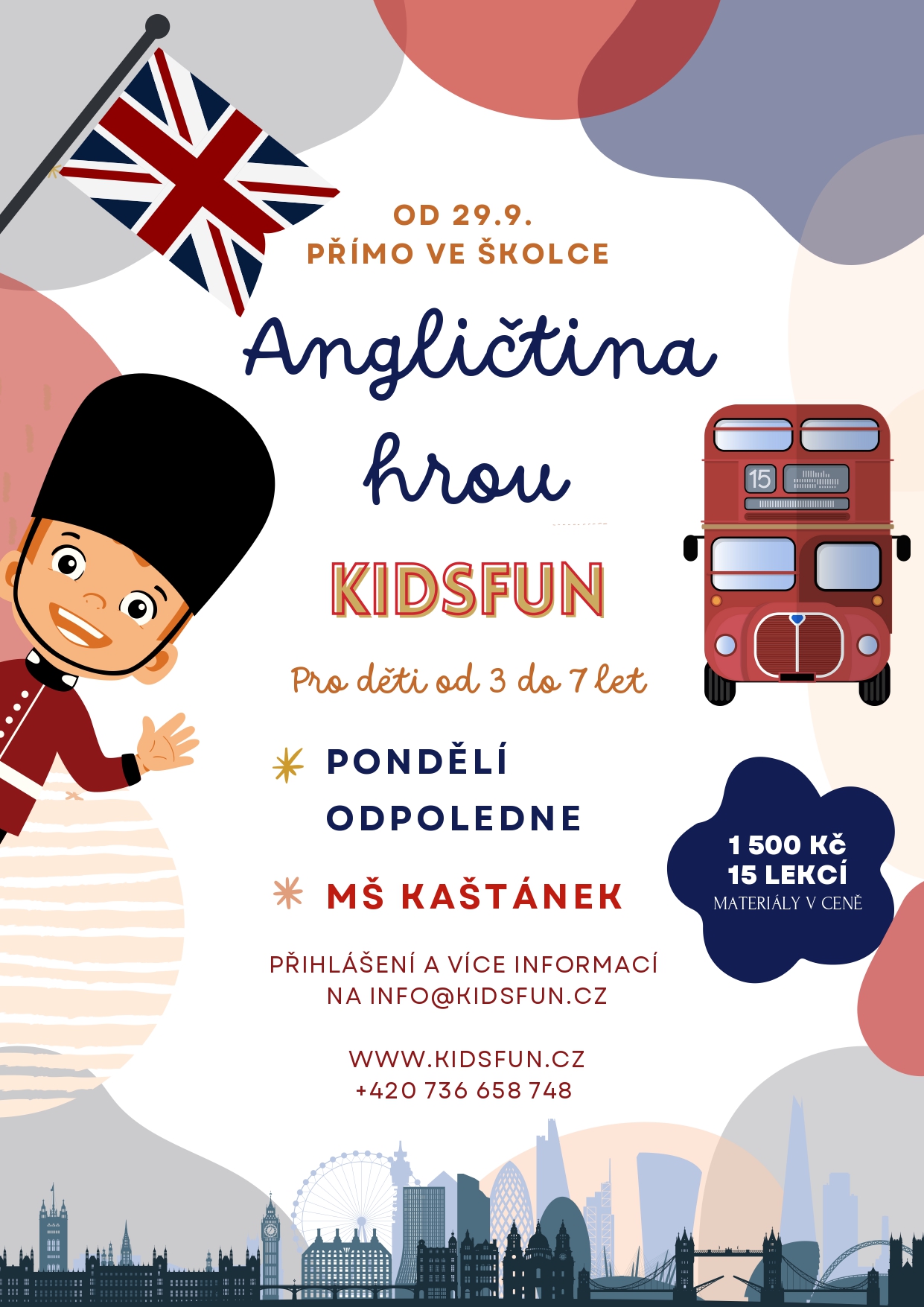 Pokud máte zájem, aby vaše dítě navštěvovalo každý týden v pondělí kroužek Angličtina hrou, přihlaste se na tomto odkaze.
